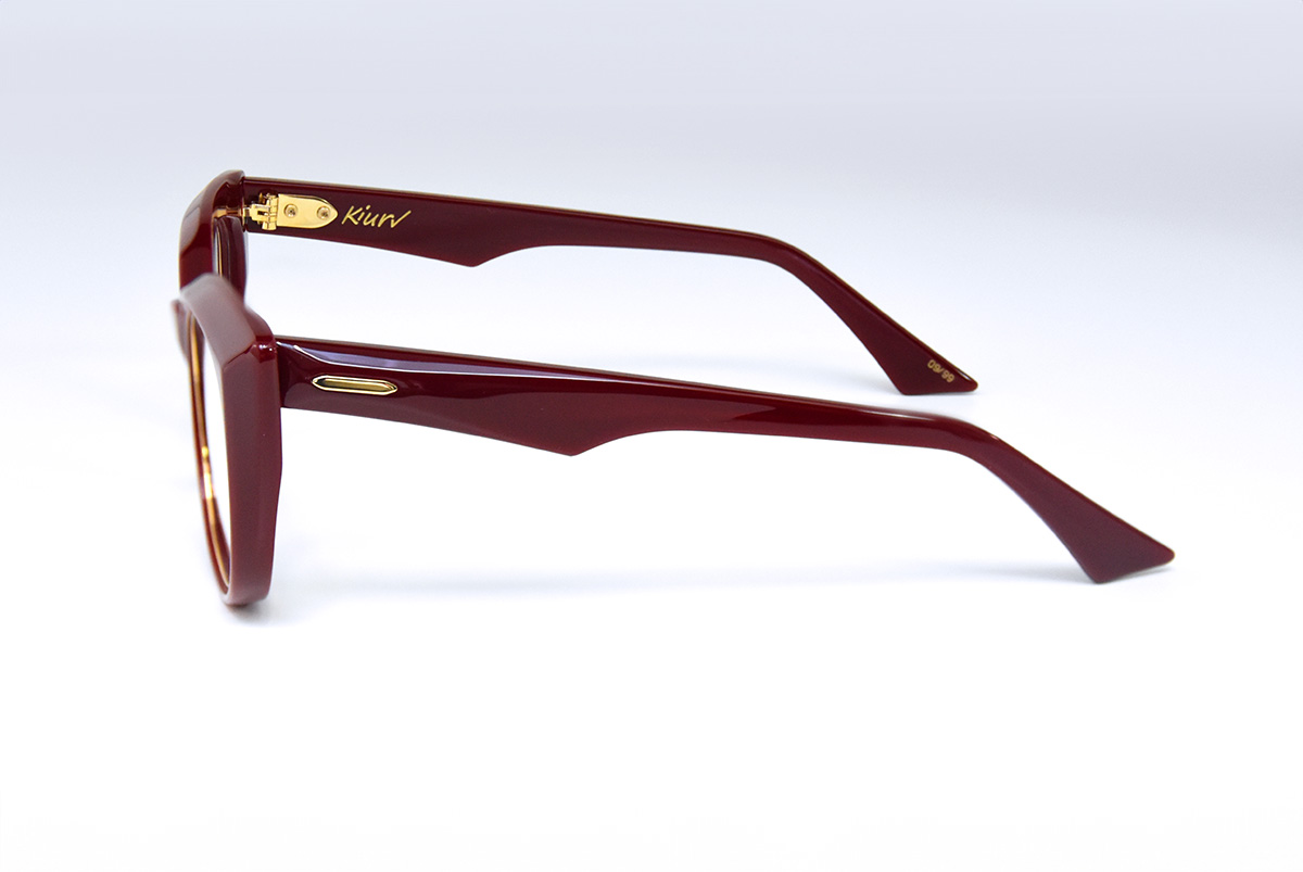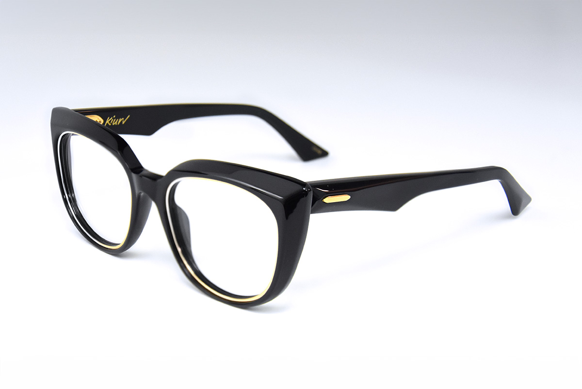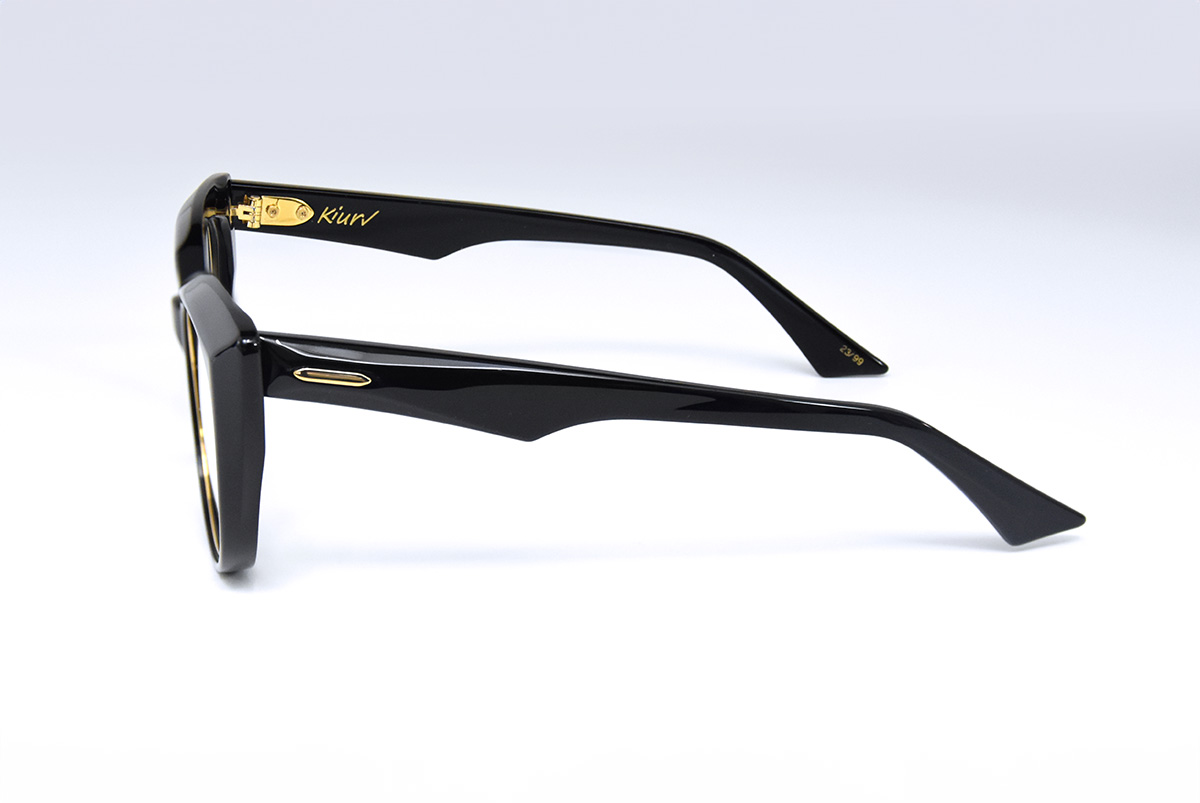 KIURV glasses are handmade with Japanese polymerized cellulose acetate frames. The 10 mm front and laminated temples are made from two 5 mm thick acetates. The finishes are 24-karat gold, and the enamel inserts enhance the elegance and precision of each frame. The one-piece hinges are made of precious metal: turned, engraved, hand-polished, and secured with custom Torx screws; all plated in 24-karat gold.