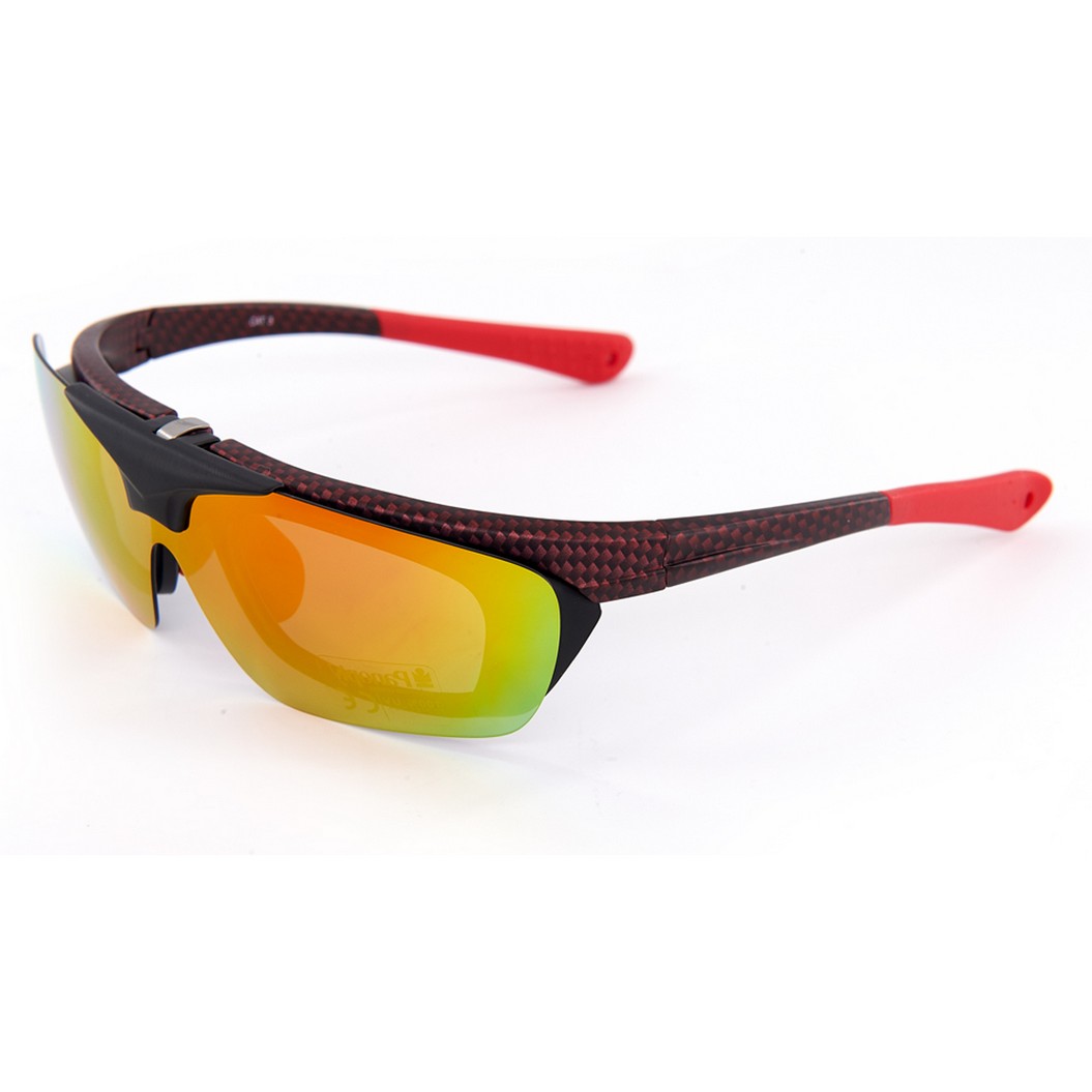 Les lunettes Panoply Sport sont des lunettes de sport dotées d'une visière relevable et de trois verres supplémentaires en polycarbonate : un verre polarisé bleu miroir, un verre transparent et un verre jaune lumineux. Elles sont également équipées d'une attache interne pour la fixation de verres correcteurs. La monture est fabriquée dans un matériau ultraléger et possède des plaquettes nasales et des embouts de branches réglables en caoutchouc et métal.