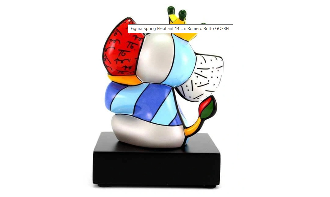 La figurine Éléphant de printemps, de la collection Goebel et signée Romero Britto, se distingue par ses couleurs vives et éclatantes. Fabriquée en céramique colorée, elle est livrée dans un coffret Goebel avec certificat d'authenticité.