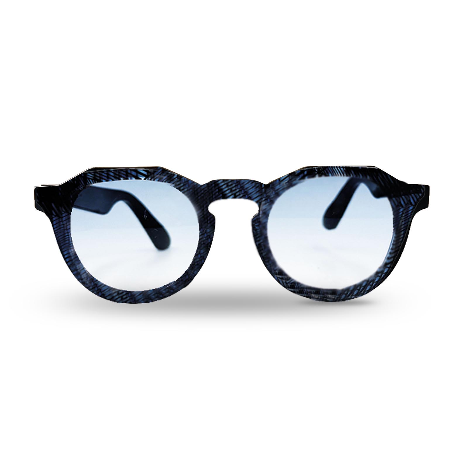 Montatura in celluloide, peso ultraleggero di soli gr.37 ed è disponibile nei seguenti colori: Havana, nero e tessuto blu.